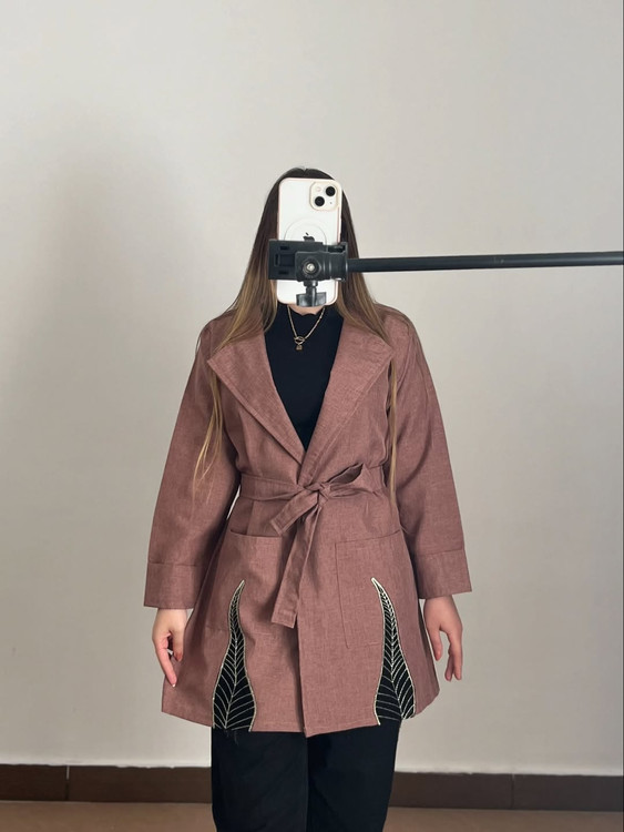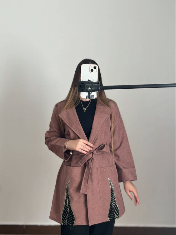 کت مزونی پاییزه با طرح مخمل و دیزاین طلاکوب اصلی. جنس پارچه و کیفیت دوخت عالی. فری سایز قد ۸۰.